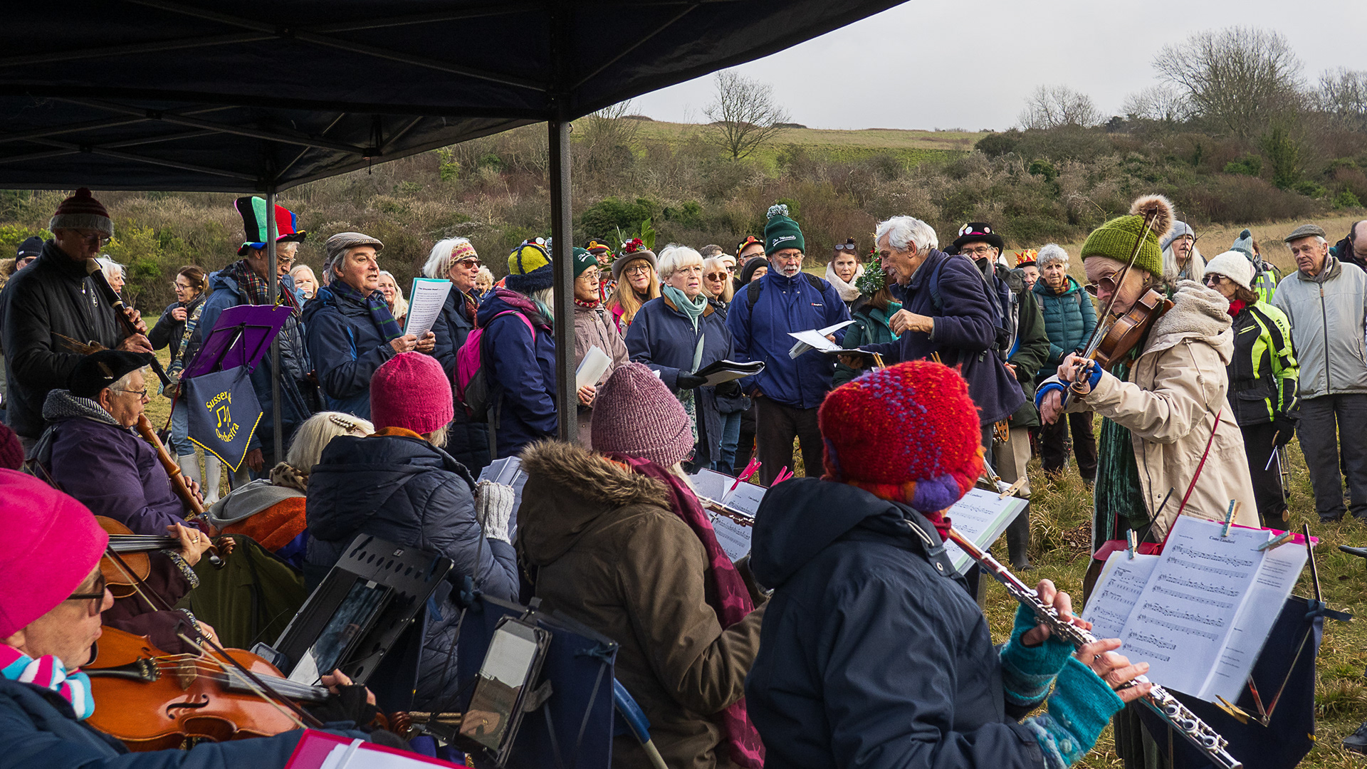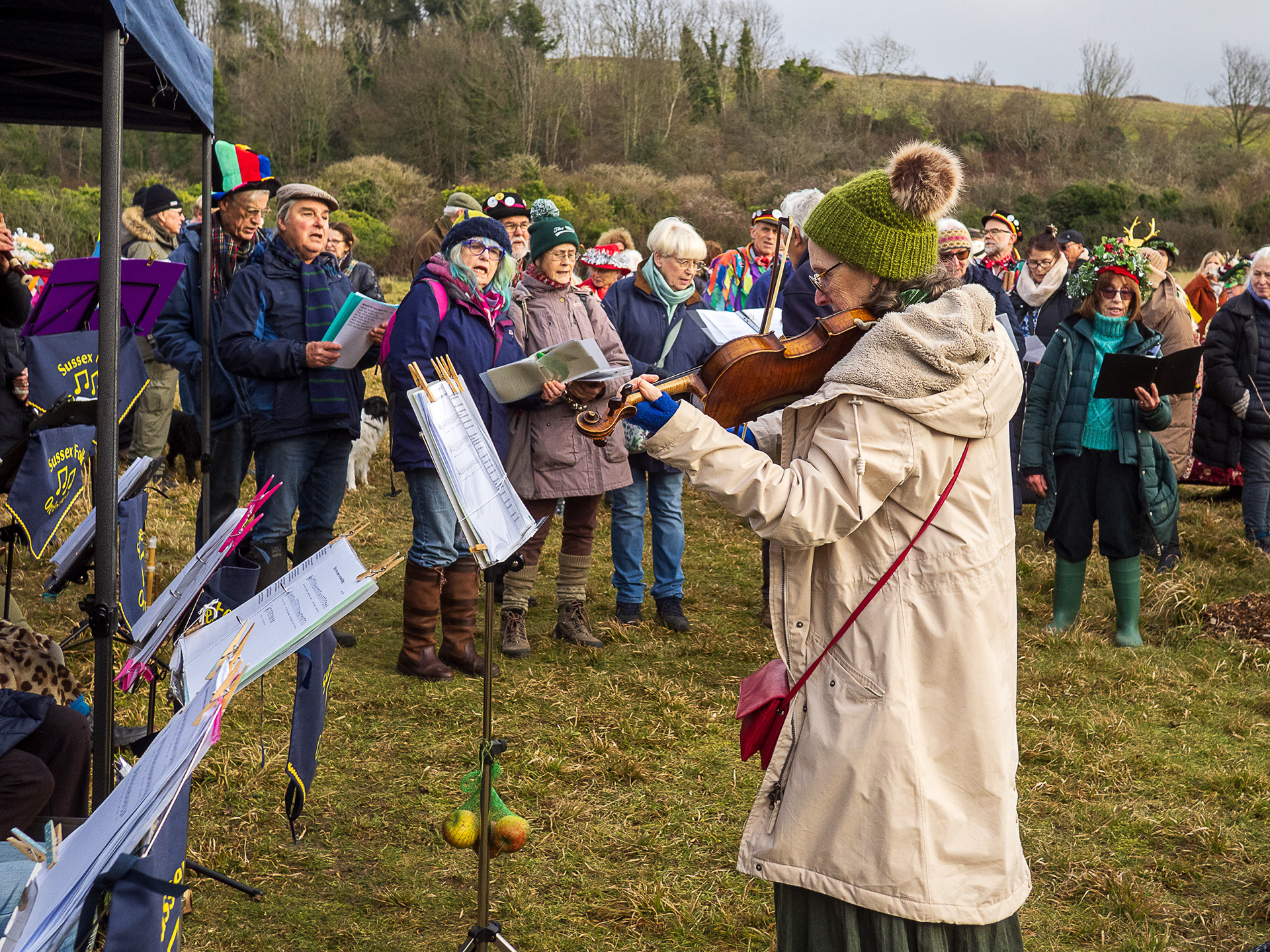 Findon Valley (at the North end of Worthing now has a community orchard and for the second year held a Wassail to bless the apple trees. This year we were joined by Sompting Village Morris and the South Downs singers for the event organised by the Findon Valley Residents Association.
